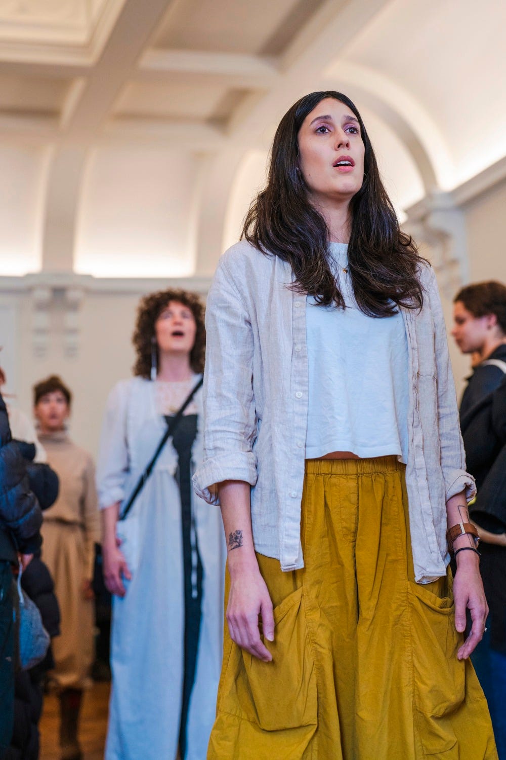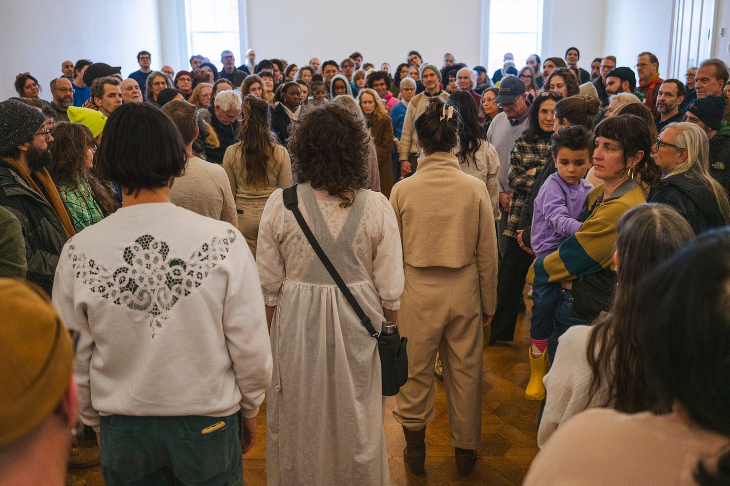 We performed to a packed room of concerned faces (after I asked everyone to stand for the duration of the performance…you know, just as we must endure winter). As reported by an audience member this “calmed and opened up as interactions occurred more often, and by the end they were all beaming with joy and singing along!”